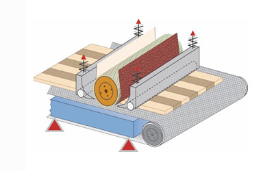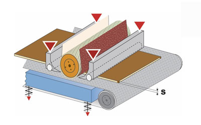 IN SANDING MODE : In veneer / lacquer sanding operation the pressure units are set rigid and the feed table works in a floating mode.